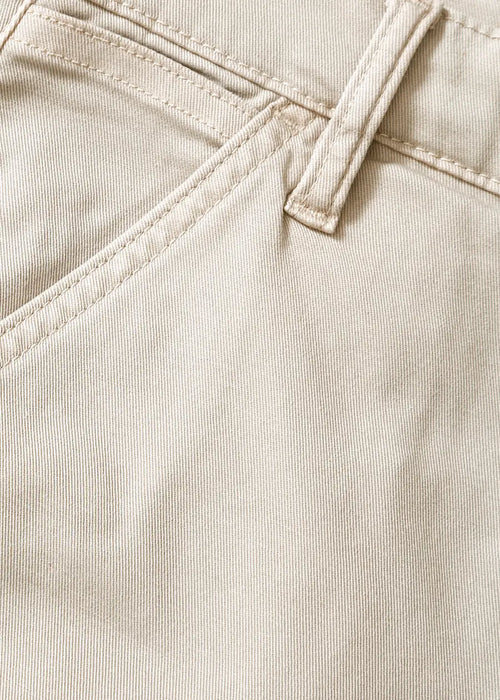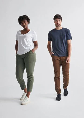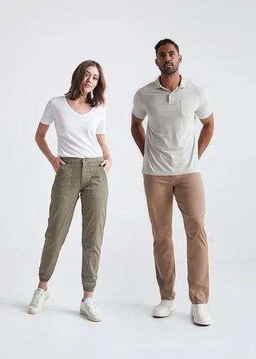 Natural fibre-rich, stretch twill fabric, derived from plants, naturally inhibits bacterial growth, offers a soft hand feel, and provides enhanced comfort through its stretch properties. Some styles are finished with a DWR treatment for water resistance.